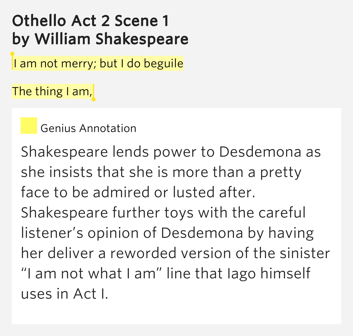 In a play dominated by men, the scheming iago, the gullible othello and the beleaguered cassio, emilia acts as a voice of honesty and reason. Memorable quotes and exchanges from movies, tv series and more. Oh, you are well tuned now,/ but i’ll set down the pegs that make this music,/ as honest as i am.